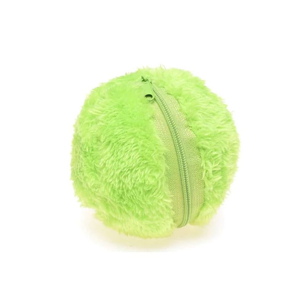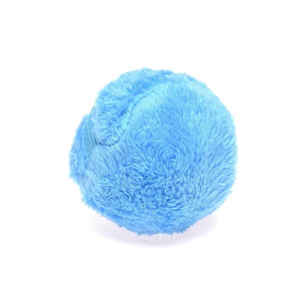 Our Rolling Ball uses a replaceable AA battery which can be easily accessed by removing the fluffy cover and twisting the ball open!