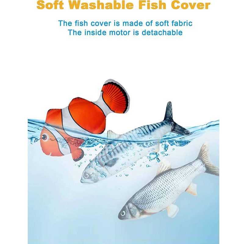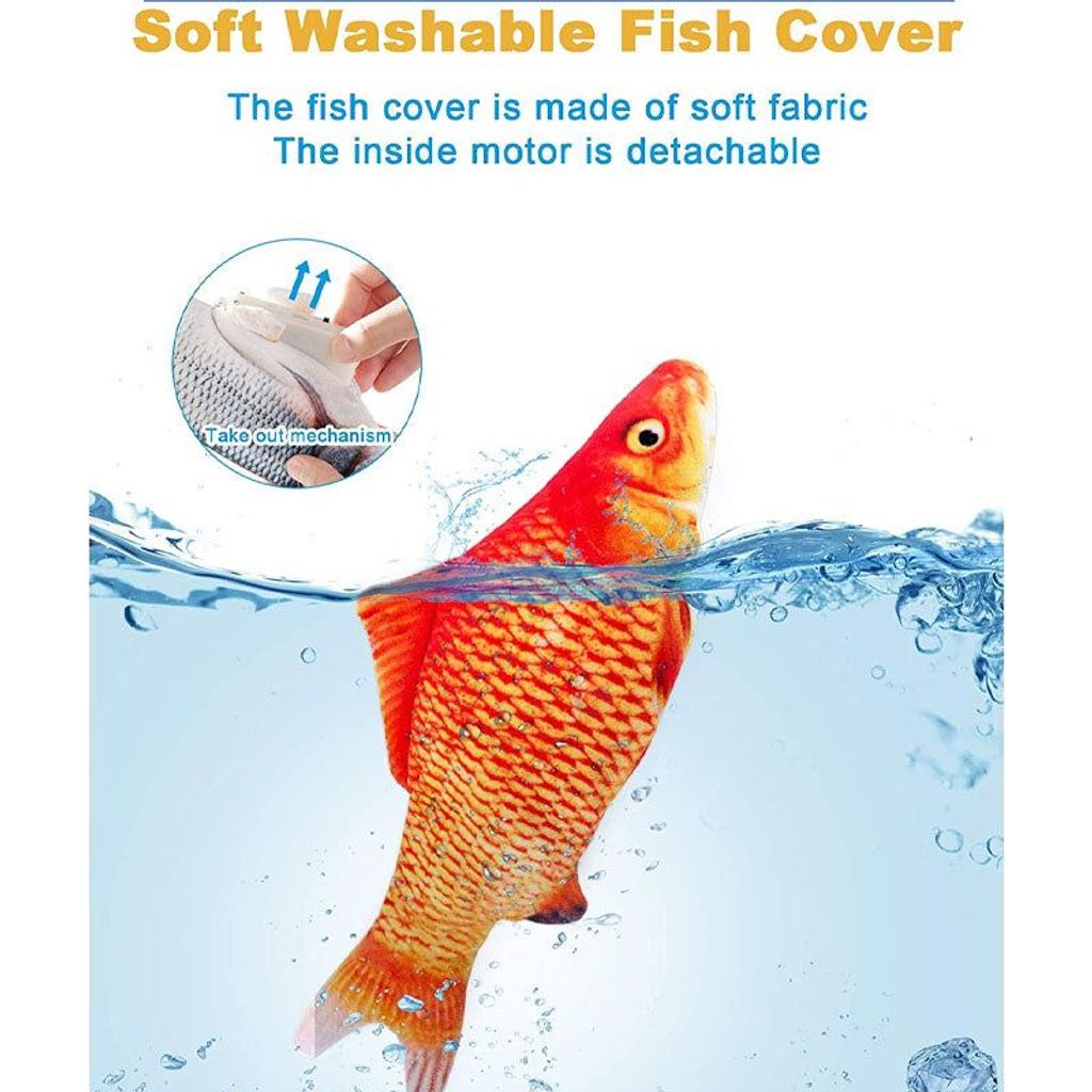 - The fish cover is made for durability, and can be washable once it gets dirty. Rechargeable battery allows for long time play. The included catnip pouch helps attract cats attention to kick and wrestle with the fish toy.